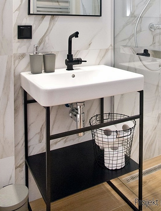 Brak blatu to oszczędność centymetrów – konsola świetnie wpasuje się nawet do najmniejszej łazienki.