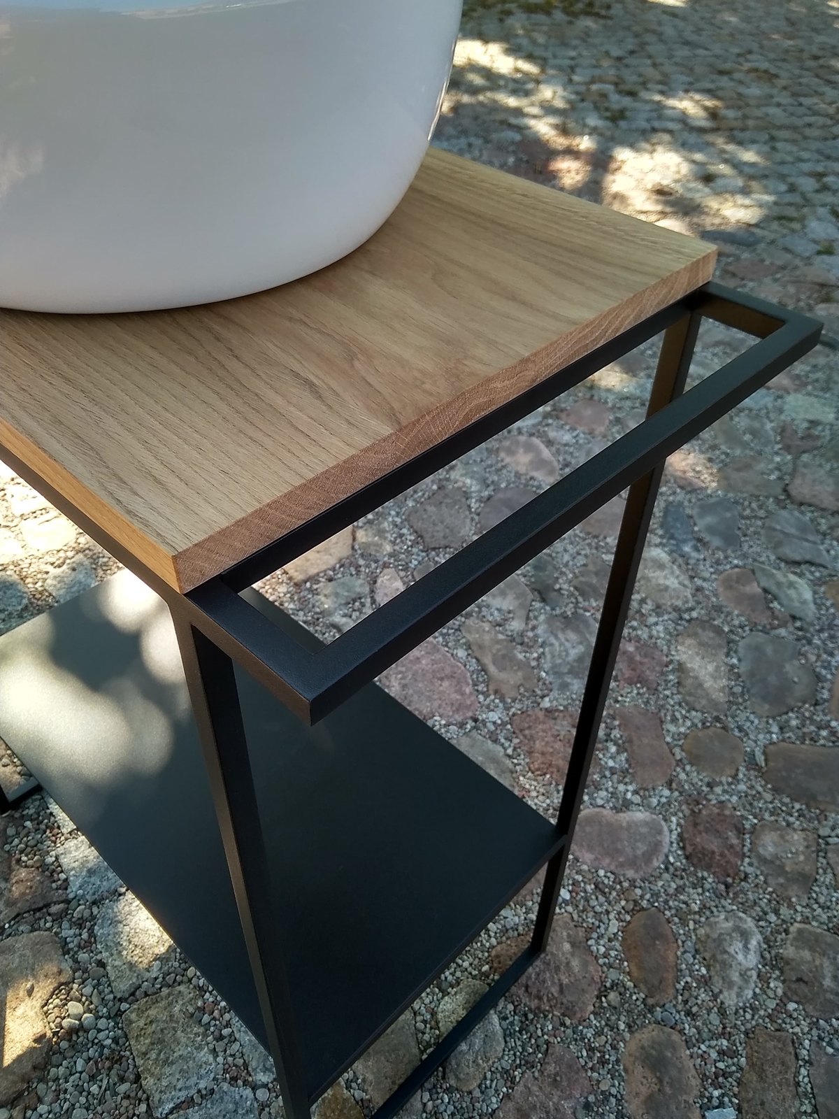 Blat zabezpieczony jest olejem OSMO. Dzięki temu nie zostają na nim ślady po wodzie lub mokrych czy kosmetykach.