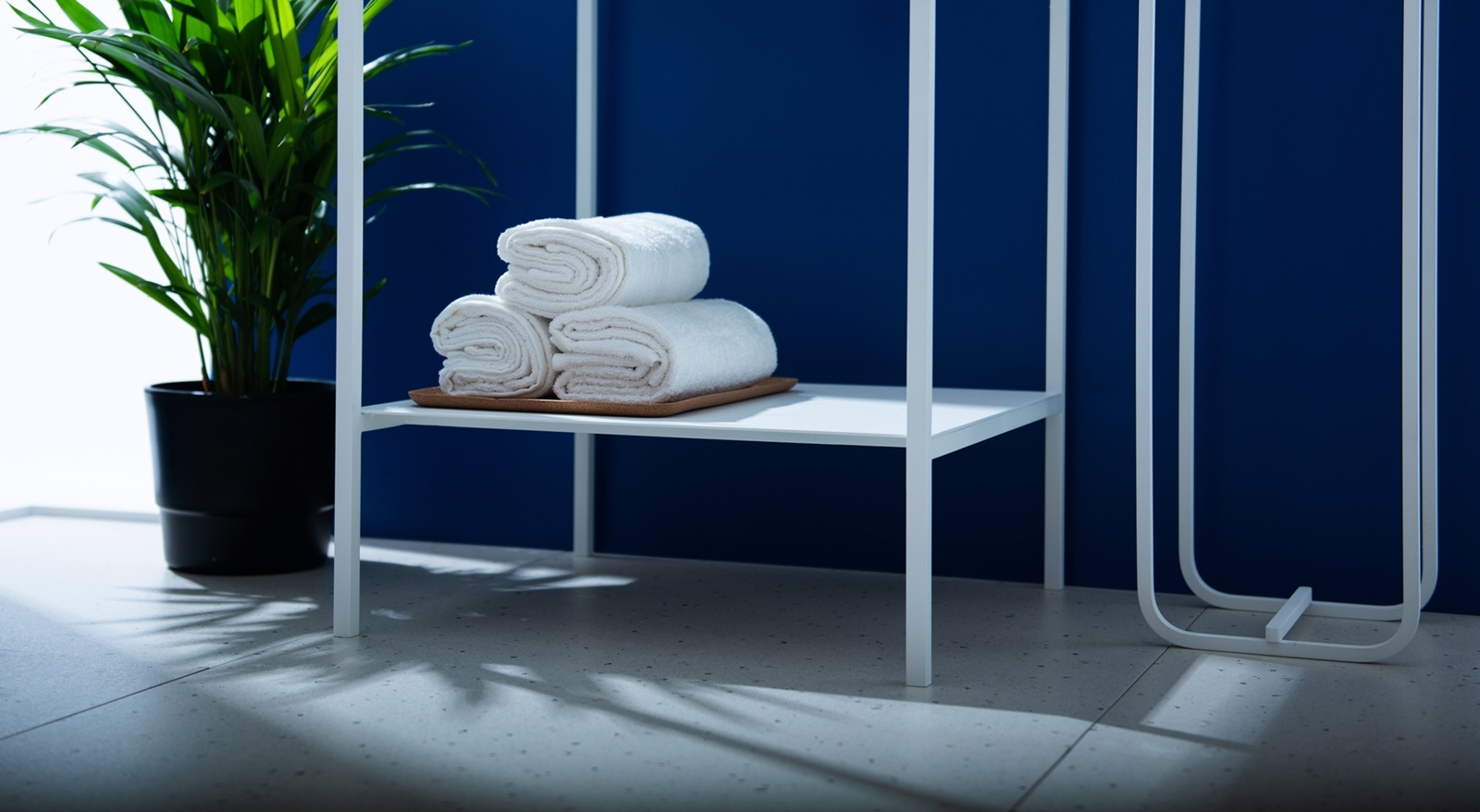 Półka pod stelażem to dodatkowe miejsce na akcesoria łazienkowe.